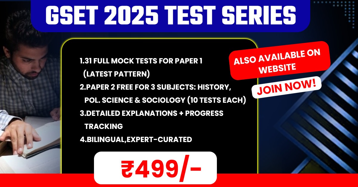Boost your preparation with JRFAdda’s GSET Test Series 2025. Access Gujarat SET previous papers PDF, full-length mock tests, subject-wise practice sets, sample papers with solutions, Gujarati/local language support, and detailed result analysis to maximize exam success.