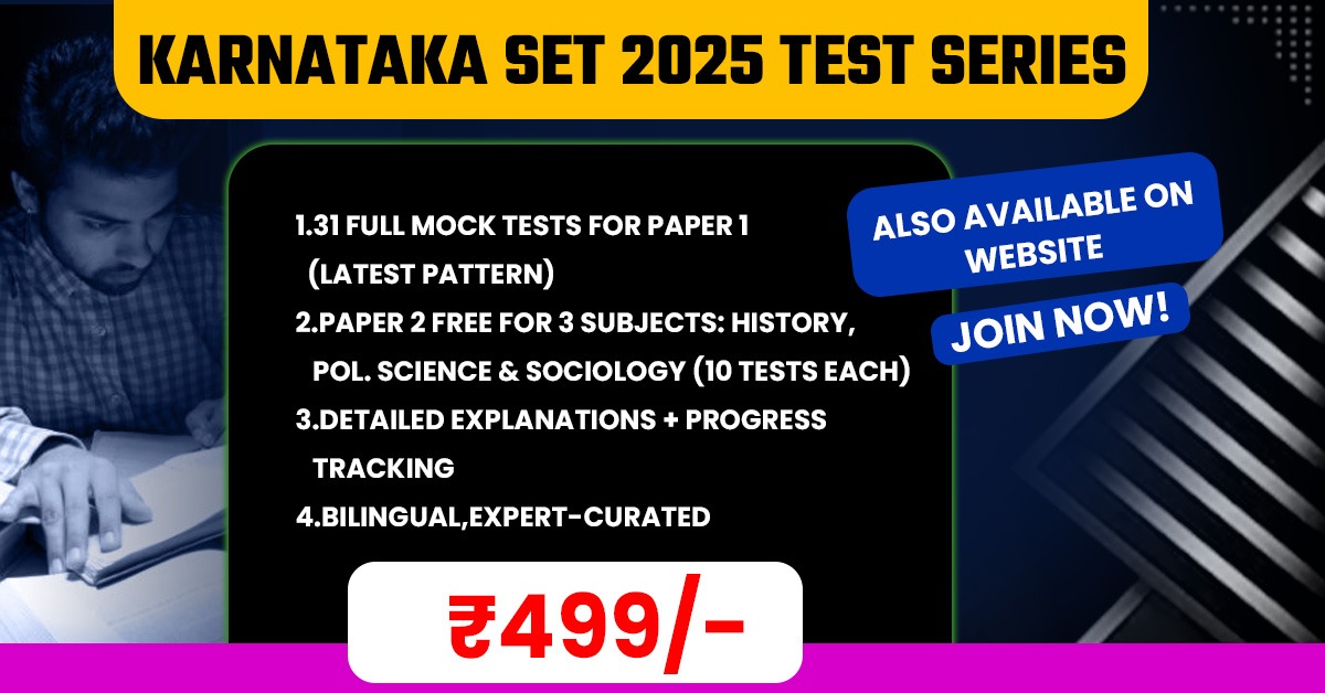 KSET Test Series 2025 is one of the best resources for the aspirants who aim to prepare for Karnataka State Eligibility Test (KSET). KSET cannot be cracked without a structured study plan, constant revision, and regular practice with mock papers. Properly planned KSET Test Series helps contestants get familiar with the test pattern, develop subject matter knowledge, and make effective time management skills. With properly designed mock tests, subject-wise practice sets, and last year papers, candidates are able to analyze their strengths, identify weak spots, and gain the confidence needed to clear the exam with distinction. At JRFAdda, we provide a comprehensive KSET Test Series that combines expert guidance, detailed analysis, and exam-level practice to ensure aspirants are fully prepared.