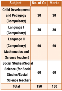 | Child Development & Pedagogy | Child Development, Pedagogical Issues, Learning Theories, | 30 Marks |