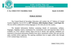 Central Board of Secondary Education (CBSE) has announced the CTET Exam Date 2026, and the exam will be held on February 8, 2026. This will be the 21st edition of CTET,. CBSE will conduct the exam in 132 cities across the country, offering it in twenty different languages.