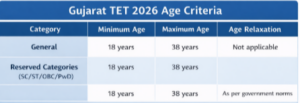 The Gujarat TET 2026 age limit is set between 18 to 38 years. Candidates from reserved categories are eligible for age relaxation as per government norms.