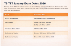 The TS TET 2026 Hall Ticket will be released by the Telangana State Government on 27 December 2025. Candidates who have successfully registered for the examination must download the admit card from the official website. Entry to the examination centre will be allowed only with a valid hall ticket, so candidates should carry a printed copy on the exam day.