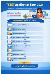 The TS TET Application Form 2026 was made available online from 15 November 2025. Applicants must complete the form through the official portal by following the prescribed procedure.