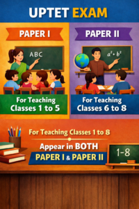 The UPTET examination is held in two separate papers. Paper I is for candidates who wish to teach Classes 1 to 5, while Paper II is for candidates aiming to teach Classes 6 to 8. Candidates who want to be eligible for teaching Classes 1 to 8 are required to appear in both Paper I and Paper II.