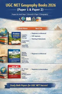 UGC NET Geography Books 2026 are required for comprehensive and effective preparation for Paper 2. Geography is a highly conceptual and analytic discipline, and appropriate books will enable candidates to develop very strong conceptual understanding in Physical, Human, Economic, and Indian Geography, and Cartography, RS & GIS.