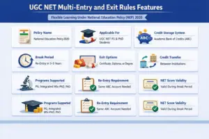 The UGC NET Multi-Entry and Exit Rules have introduced a major transformation in India’s higher education system by offering flexibility in postgraduate and doctoral programs. These rules are part of the National Education Policy 2020, which aims to create a more student-centric education framework.